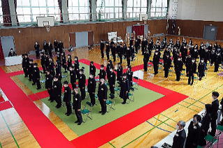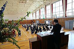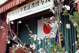 この日に咲きそろうように準備したサクラが会場を彩るなか、3月1日、27名の卒業生を送り出しました。ウイルス感染予防のため他校の多くが卒業式式場に入ることのできる人数を制限していますが、田口高校では感染防止に充分な配慮をしたうえで、卒業生、保護者だけでなく在校生も体育館に揃って式を行いました。