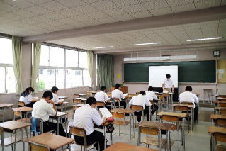 6月25日木曜日、4年制大学入試担当者、新城公共職業安定所職員等を講師にお迎えし、進学と就職合わせて5つの分科会を設けました。3年生はそれぞれの進路希望に応じた講座を受講し、受験の実際や進学に必要な費用、勉強方法、就職希望者は働くことについての心構えなどを伺うなかで、進路目標達成への心構えを新たにしました。