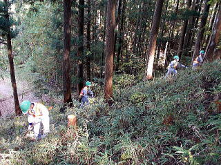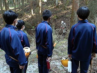 10月28日、林業科1年生が3年間で最初となる演習林実習に取り組みました。日帰りのため、短時間に集中して下草刈り作業を行いました。10月30日には、普通科1年生も鴨山に行きました。鴨山演習林が田口高校の歴史のなかでとても大切な場所であることや、同学年の林業科の仲間が学ぶことについて知ることができました。