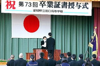 全国一斉の学校休業とビデオなどの遠隔授業の日々、調理や泊を伴う行事の制限など、様々な困難に直面しながらも努力を重ねてたどり着いた卒業式。卒業生のみなさんの胸中にはいろいろな想いが駆け巡ったことでしょう。卒業おめでとうございます。これからも卒業生として田口高校への支援をお願いします。