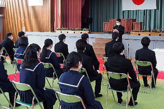 3年生の卒業が目前となった2月10日、予餞会を行いました。ダンスやマジックショー、クイズに映像作品など、クラスごとに創意工夫を凝らした出し物で3年生へ感謝の気持ちを伝えました。校長先生をはじめ先生方からのステージもあって予餞会は大盛り上がり。3年生は田口高校での思い出を振り返り、楽しい時間を過ごすことができました。