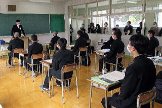 授業のできなかった期間、プリント課題だけでなく、先生ごとに工夫を凝らして作成した動画も配布したり、一部の科目ではオンライン授業も実施したりして、家庭での学習を支援しました。また、学年ごとの登校日には、質問に応えられる時間を設け、生徒一人ひとりの生活の様子や悩みなども聞くことができるよう面談も行いました。必要な生徒には家庭訪問を行うなど、小規模高校だからこそできる、きめ細かな対応に全教職員が一丸となって取り組みました。