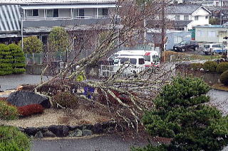 しかし、近年枝が枯れ落ちはじめ、風雨が強まると倒壊の危険もあることから、残念でしたが3月8日に伐採を行いました。なお、ロータリーには創立80周年記念事業の一環として新たな樹木を植樹し、伐採したケヤキは田口高校のための新たな活用方法を検討することとなっています。