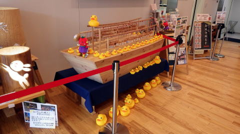 令和5年2月25日に、設楽ダムの転流式で披露した「祝い船」が、道の駅したら2階で展示されています。