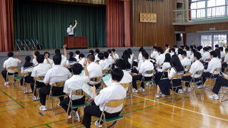 1学期末テストも終わり、7月20日には終業式を迎えます。夏休みを目前にした7月13日、設楽警察署から講師をお迎えし、「夏休み事前指導」を行いました。