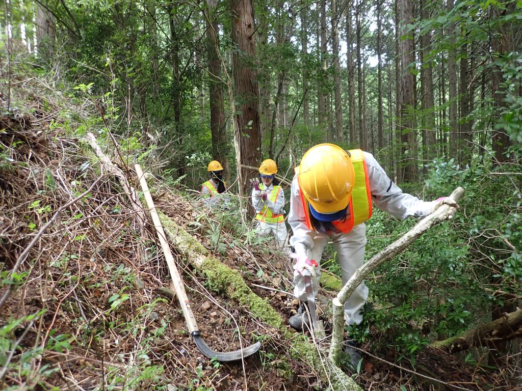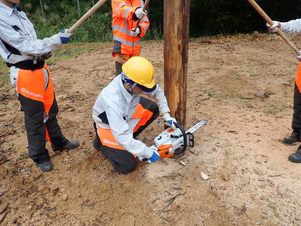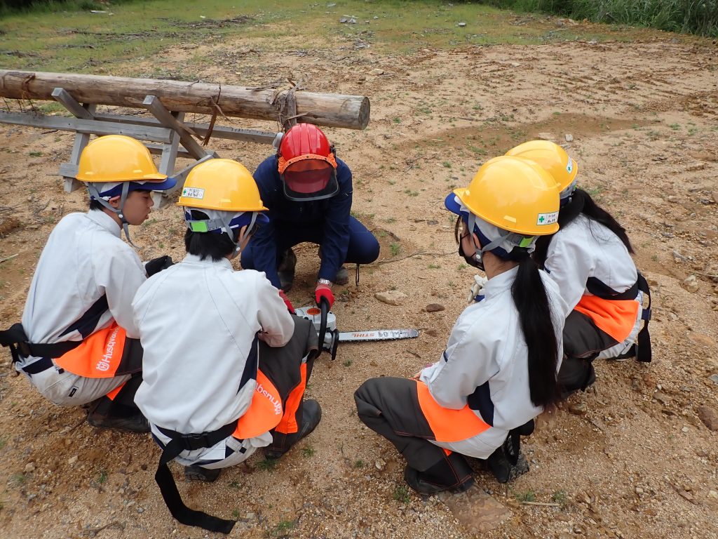 2年生/学校生活 林業科2年生演習林実習 2025年9月22日 9月17~19日 林業科2年生8名が2泊3日の演習林実習を行いました。 17日は林道整備。18日は間伐予定地に入り、ボソ払い。最終日はチェーンソーを使った玉切りや受口の作り方を学びました。 林内での実習は蒸し暑く大変でしたが、山に吹く風に秋を感じることができました。