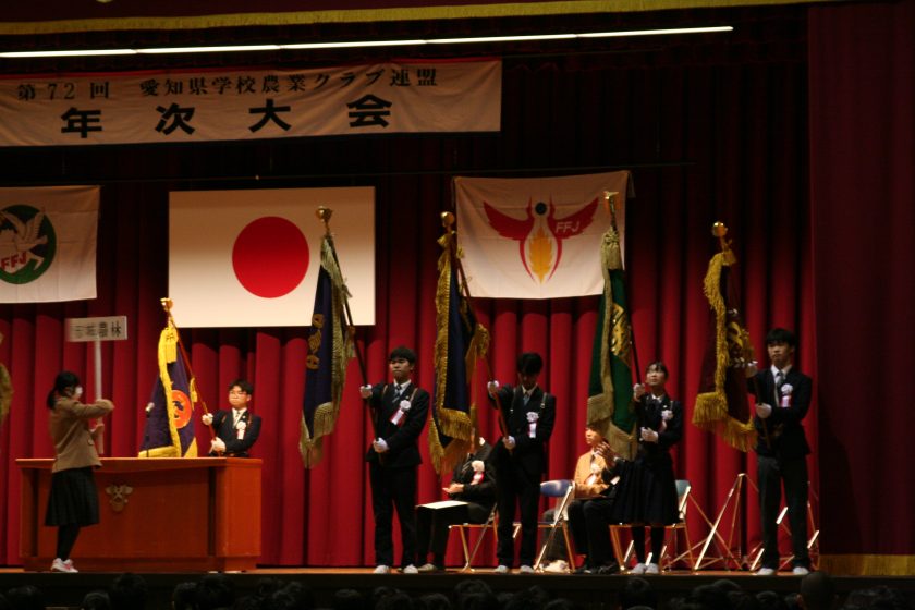 1年生/2年生/3年生/学校生活 愛知県学校農業クラブ連盟 年次大会 2025年11月25日 11月11日(火)農業クラブ役員3名が安城農林高校で行われた年次大会に参加しました。 開会式の校旗入場では、本校単位クラブ会長が校旗を持って堂々と入場しました。 今年度の各種競技会の最優秀校による発表が行われ、参加した2年生にとって、来年度の本校での農業クラブ活動の参考になったと思います。