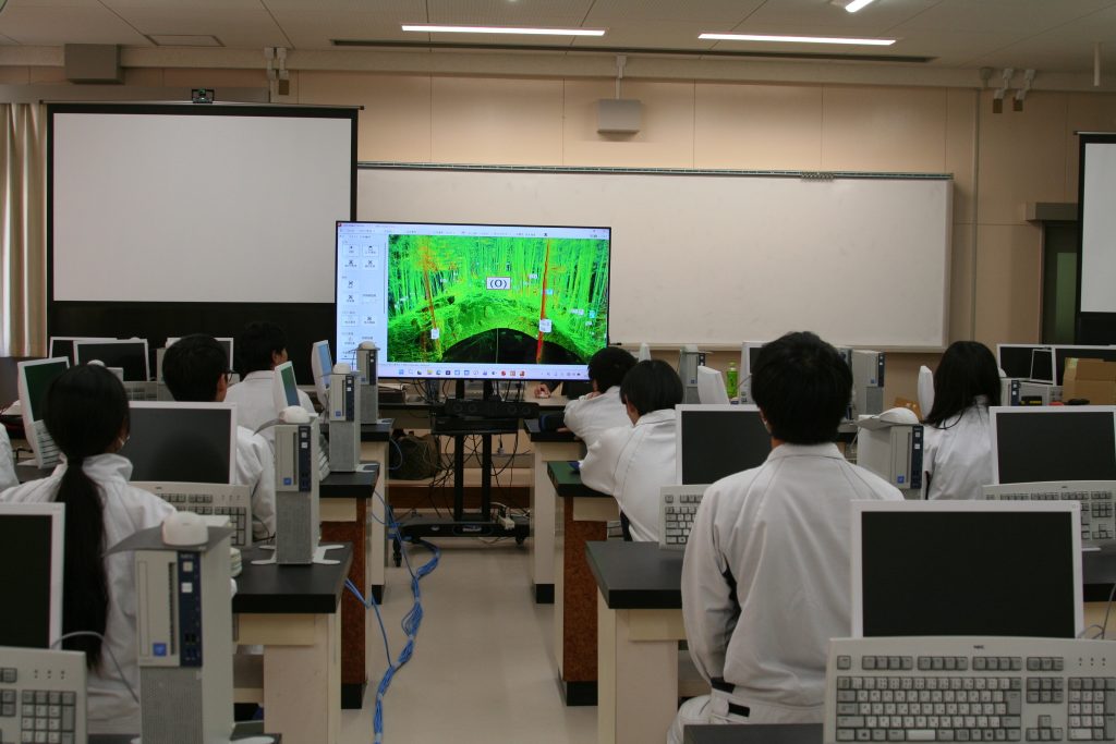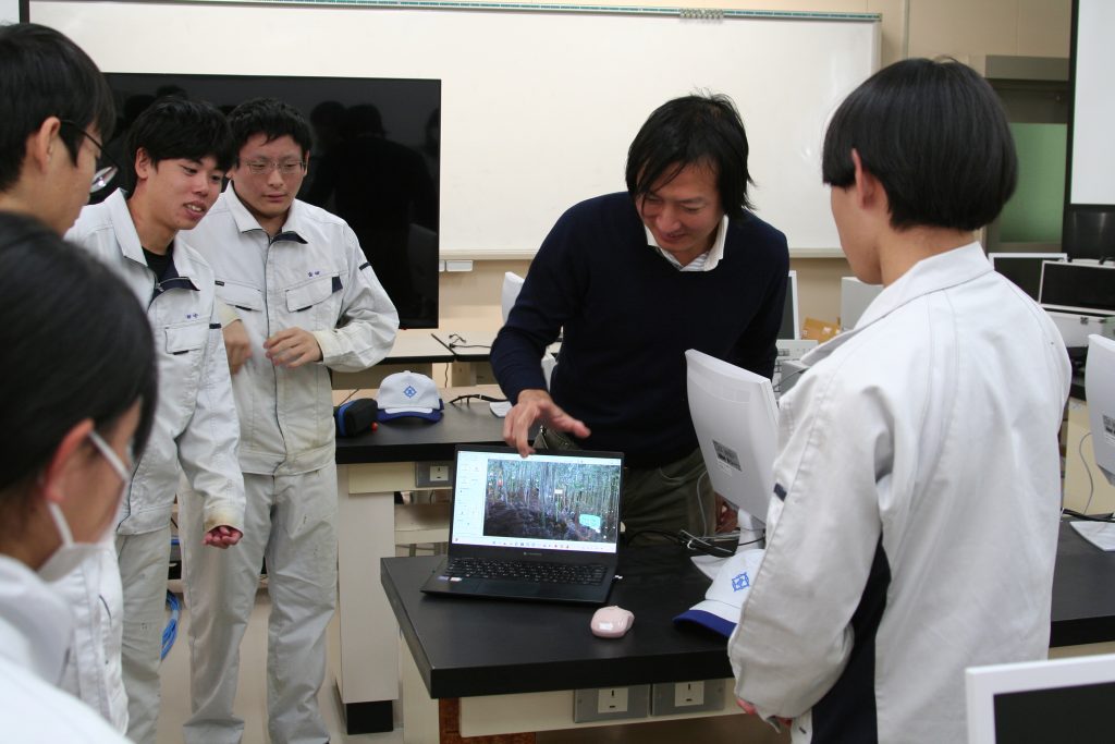 2年生/学校生活 林業科2年生 新技術体験授業 2025年11月25日 11月20日(木) 林業科2年生を対象に森林解析に関する新技術体験授業を実施しました。 株式会社アドイン研究所様から講師としてお越しいただき、森林内の立木・地形情報を簡単に得ることができる「森林3次元計測システムOWL」を使った、最先端の森林解析の手法を学ぶことができました。