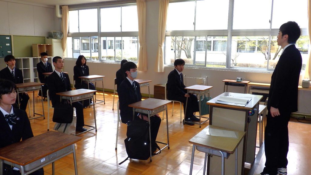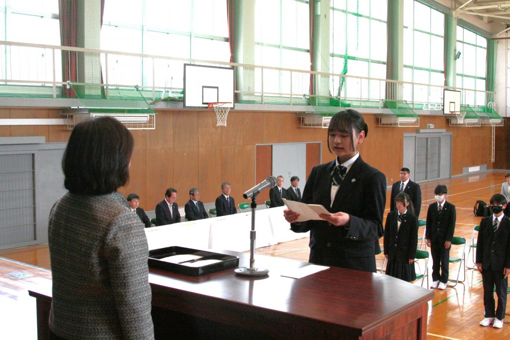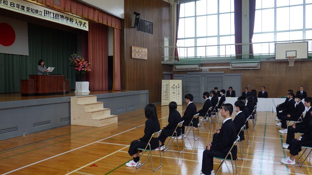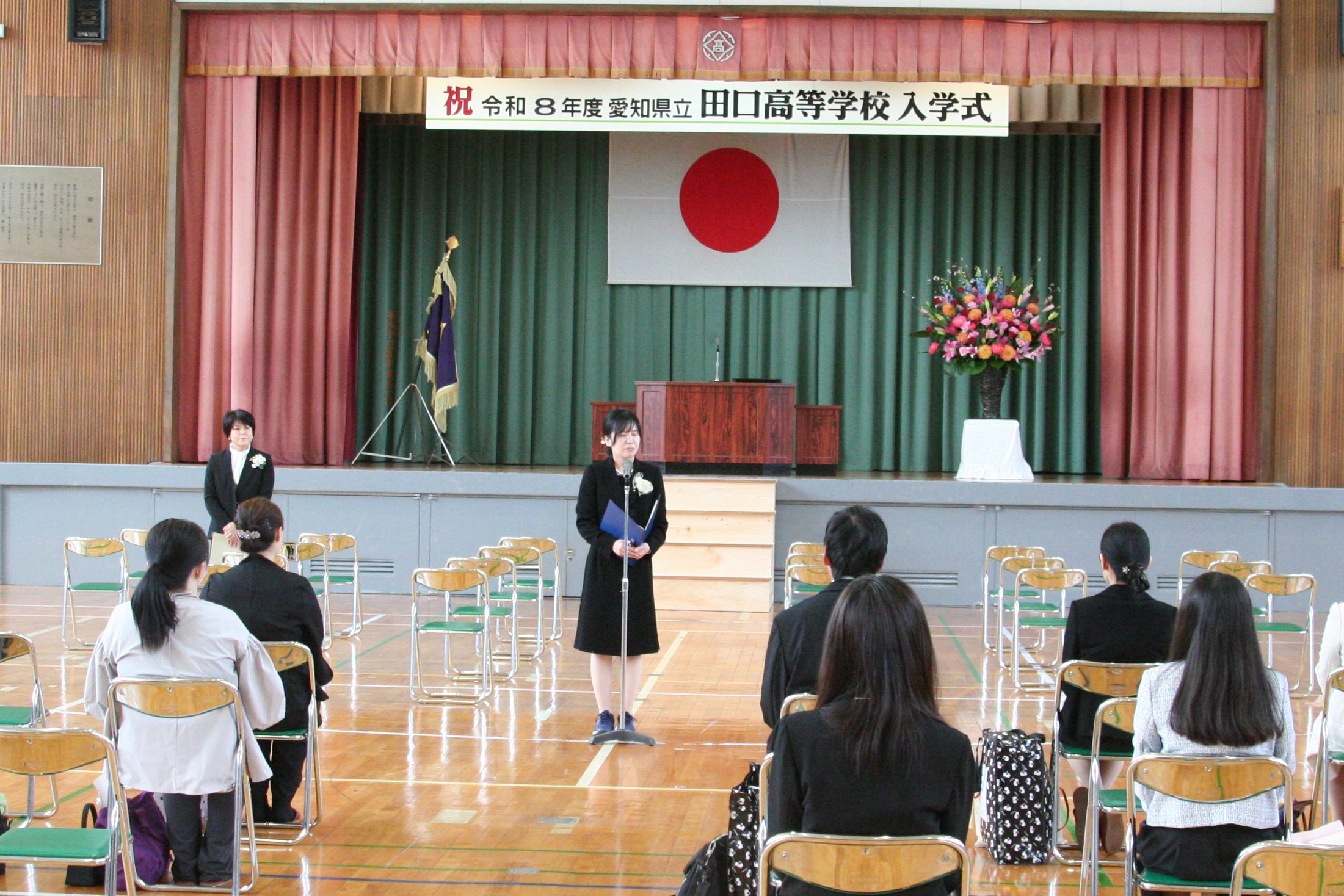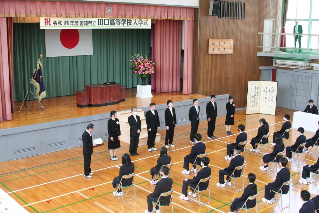 1年生/学校生活 令和8年度入学式 2026年4月8日 4月6日(月)、入学式を行いました。今年度は普通科9名、林業科10名の生徒が田口高校の門を新たにくぐりました。式では、新入生を代表して、普通科の古井戸涼華さんが、校訓である「立志、忍耐、誠意」のもと、目標を掲げて努力することを力強く宣誓しました。 式典後のクラス開きでは、正副担任からの挨拶のあと自己紹介などが行われ、新入生も表情も次第に和らぎ、笑顔がこぼれる場面も見られました。 これから始まる高校生活が、一人ひとりにとって実り多いものになることを願っています。